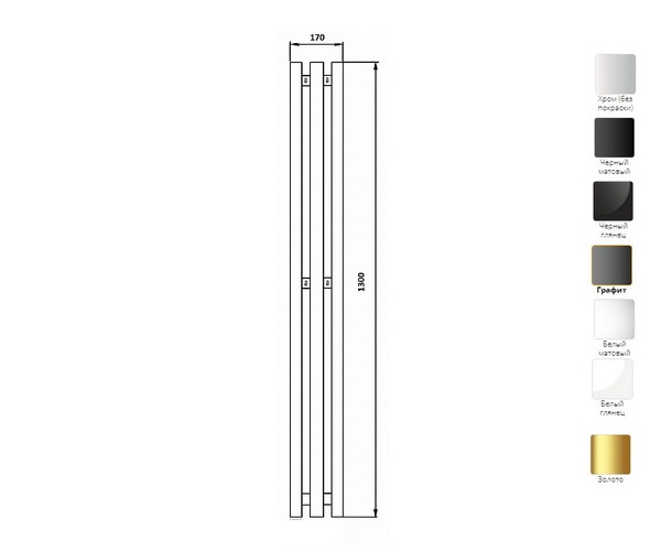 полотенцесушитель БЕРГАМО-3К 140х1300 из нержавеющей стали, труба Ø32 мм. Крючки на верхней планке. Для централизованных или местных систем горячего водоснабжения с давлением воды до 16 атм и температурой до 110 ºС. Также производится в размерах от 140х1000 до 140х2000. Фитинги для подключения заказываются дополнительно